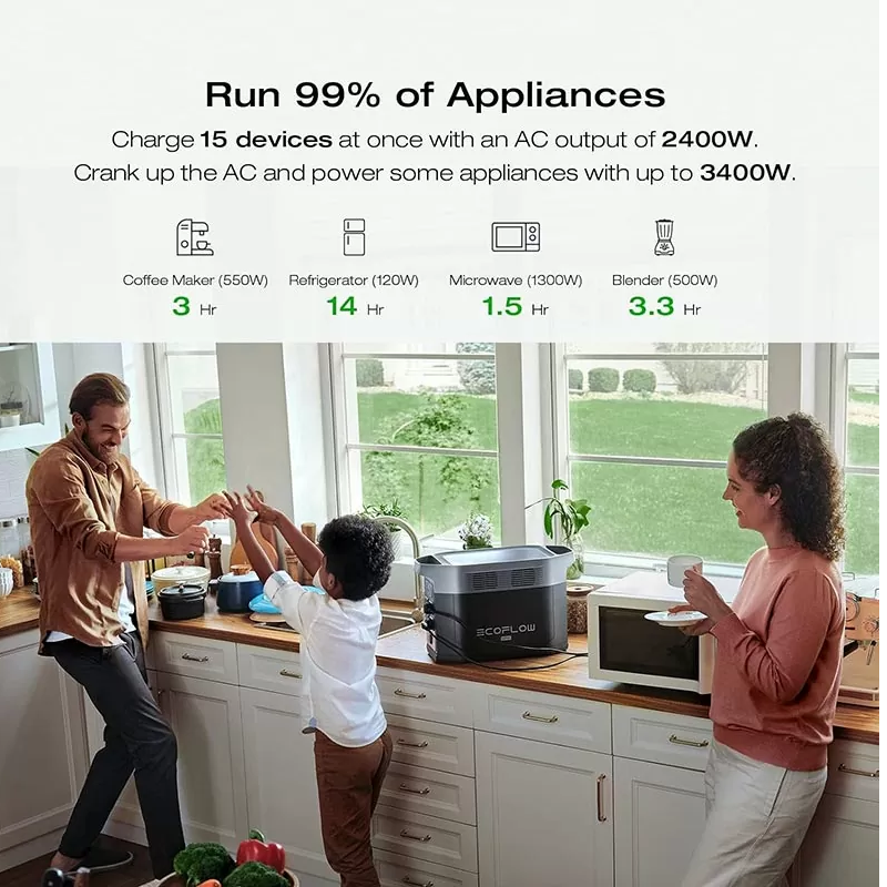 • 2400W Output (3400W Surge): X-Boost technology runs 99% of devices up to 3400W—perfect for camping, RVing, or home outages with this portable power station.