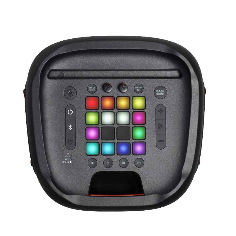 This speaker includes a DJ launchpad with customizable drum, keyboard, and sound effects, allowing users to mix their beats live. It also features Karaoke Mode with mic and guitar inputs, making it a perfect choice for music enthusiasts and performers.