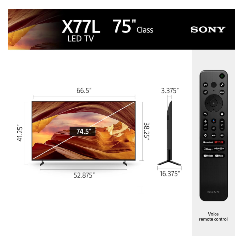 Running on Google TV, the X77L gives you access to Netflix, YouTube, Disney+, Prime Video, and more. Google Assistant, Chromecast built-in, and Apple AirPlay offer effortless streaming and voice control. The bezel-less design adds a sleek, modern touch to your living space.